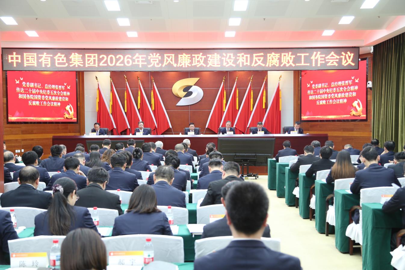 1月27日,中国有色集团党委召开2026年党风廉政建设和反腐败工作会议,总结2025年工作,部署2026年重点任务。会议强调,要深入学习贯彻习近平总书记关于党的建设的重要思想、关于党的自我革命的重要思想,深入落实二十届中央纪委五次全会精神,坚定拥护“两个确立”、坚决做到“两个维护”,聚焦党的自我革命“五个进一步到位”和“三个更加”重要要求,一体强化党性党风党纪,贯通推进正风肃纪反腐,以全面从严治党新成效为集团公司高质量发展提供坚强保障。集团公司党委书记、董事长文岗出席会议并讲话,党委副书记、总经理张晋军主持会议并传达二十届中央纪委五次全会、国务院国资委党风廉政建设和反腐败工作会议精神,党委委员、纪委书记徐锋作纪委工作报告,集团公司领导班子成员出席会议。