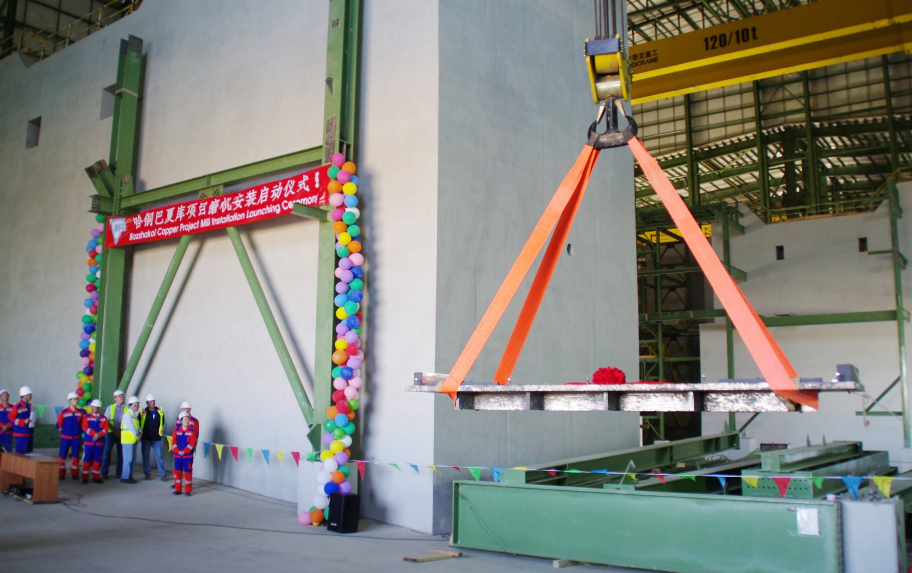 2014年8月3日上午10时18分,在各参战施工单位共同见证下,哈铜巴夏库项目磨浮车间2号球磨机主轴承座底板缓缓升起,起重人员和磨机安装人员精心操作,底板精准就位。哈铜巴夏库项目硫化矿设备安装核心任务—磨机安装正式拉开序幕,标志着哈铜巴夏库选厂项目设备安装进入一个新的阶段。