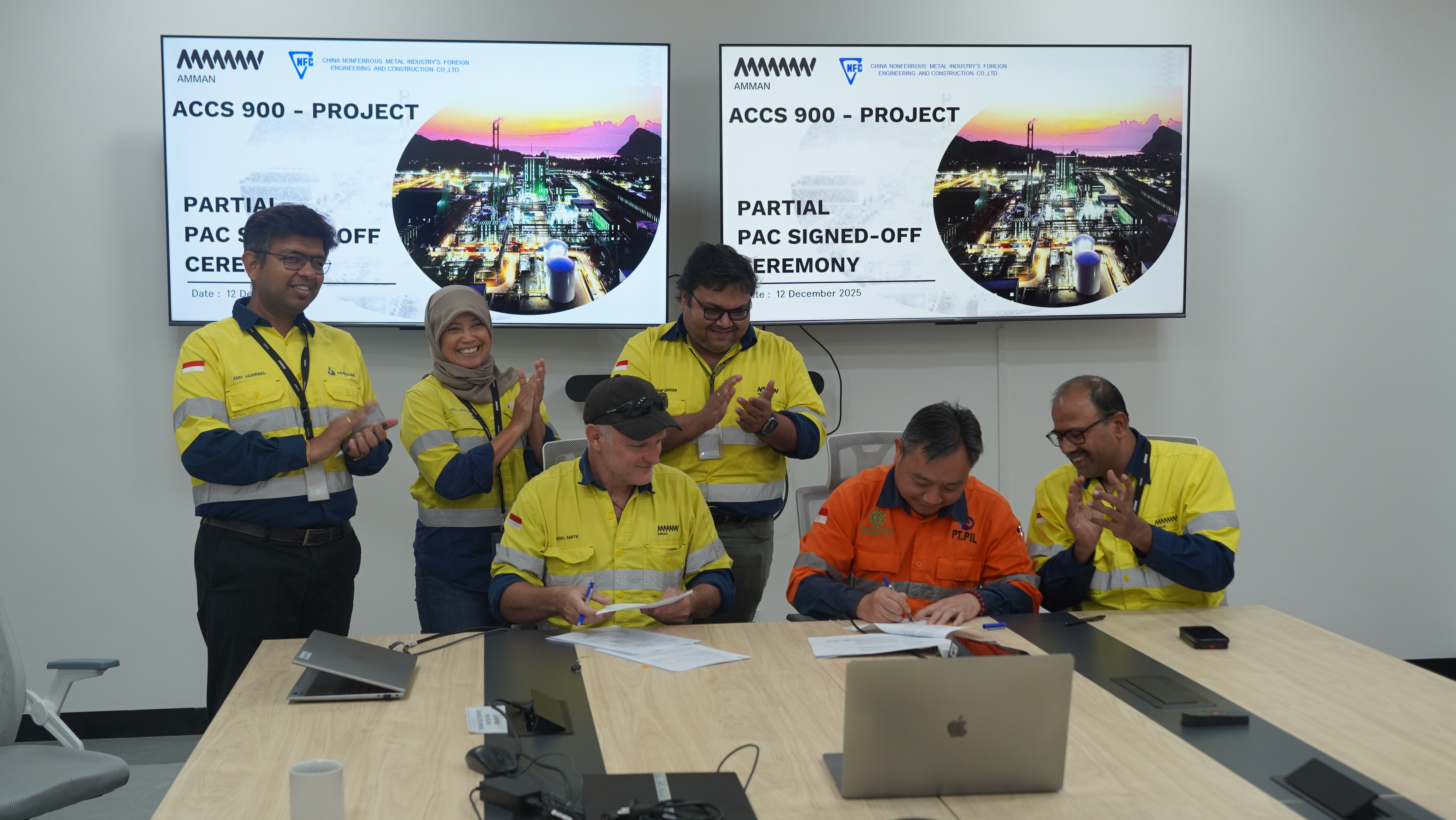 2025年12月12日,公司承建的印尼阿曼铜冶炼项目迎来又一重要里程碑——签署部分竣工验收(Partial PAC)证书,标志着印尼阿曼铜冶炼项目冶炼厂单元(SSE Unit)已进入最终的达产达标和性能考核阶段。